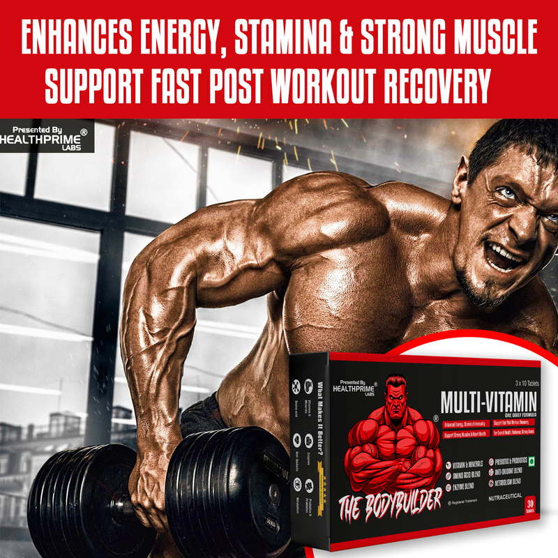 3. Immune System Fortification: Intense physical activity can temporarily weaken your immune system. Healthprime labsThe Bodybuilder Multivitamin includes immune-boosting ingredients such as Vitamin C, Zinc, and Echinacea to help you stay healthy and on top of your game.